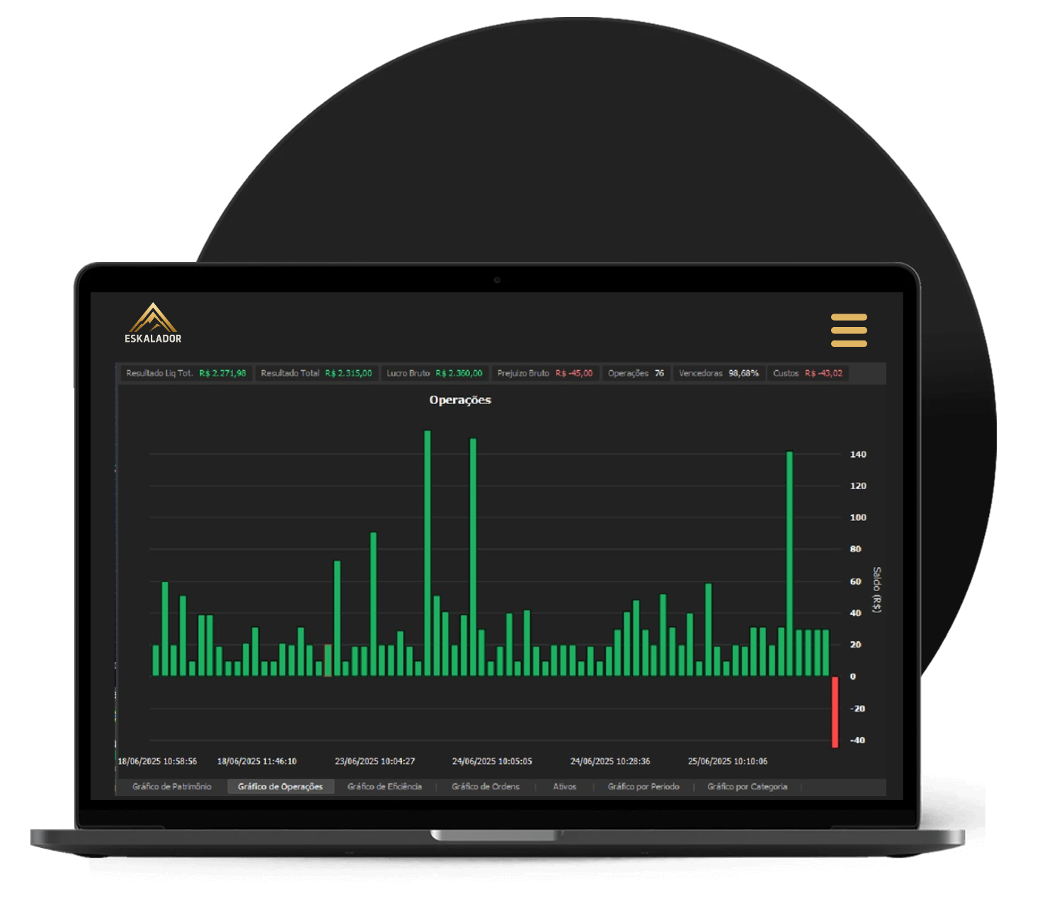 O Eskalador é fácil de instalar e configurar. Uma vez ativado, ele executa operações de Day Trade de forma autônoma, seguindo estratégias pré-definidas e otimizadas para o Mini Índice. Você não precisa ter conhecimento em programação ou estratégias complexas.